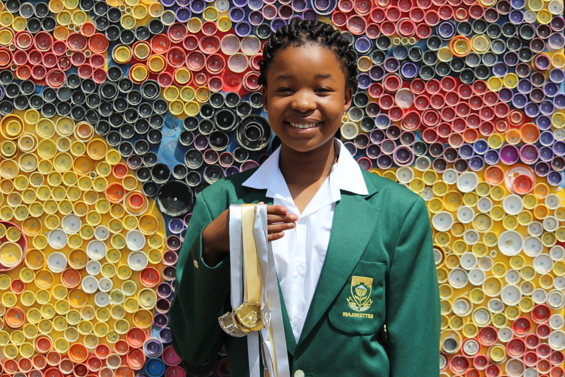Sibulele Kentane, our proud Protea, returned back from Cape Town with her green and gold blazer, after competing in the Majorette World Federation Championships. #TEAMSA competed in 9 displays and won 5 medals, 2 Golds and 3 Silvers. Sibulele loved meeting majorettes from other countries and enjoyed #TEAMSlovakia‘s flexible and tricky displays. What an excellent achievement – well done!